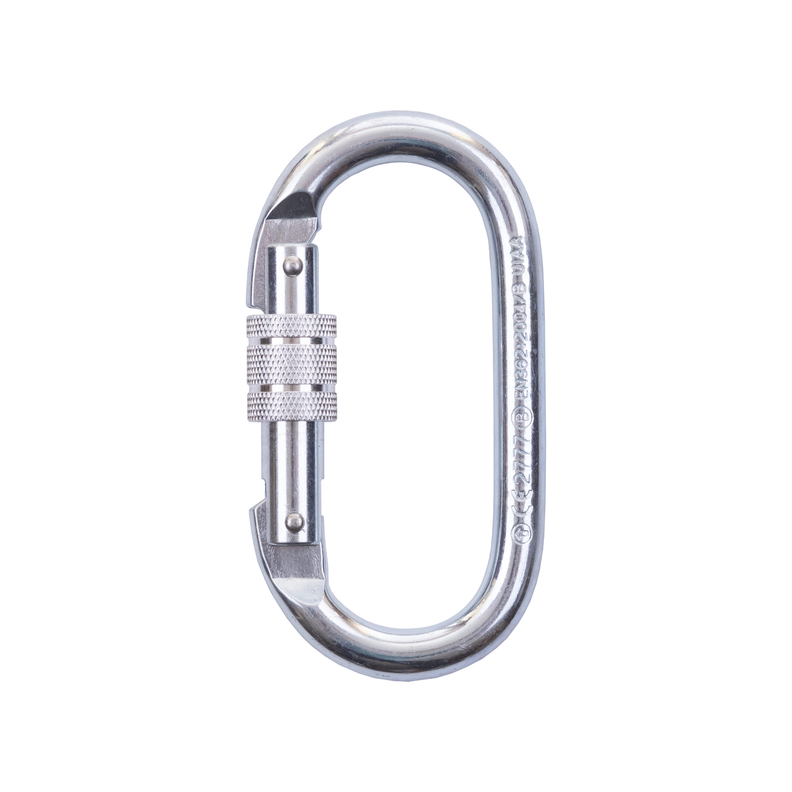 Grade B steel carabiner, with screw sleeve and 15mm opening;